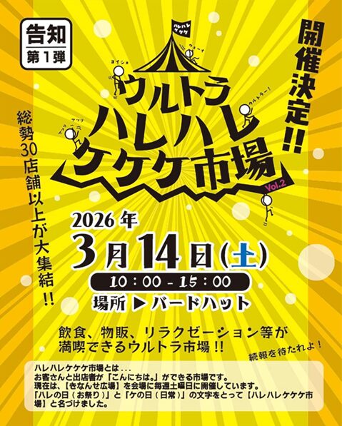 鳥取駅前バードハットにてウルトラハレハレケケケ市場の開催決定!!