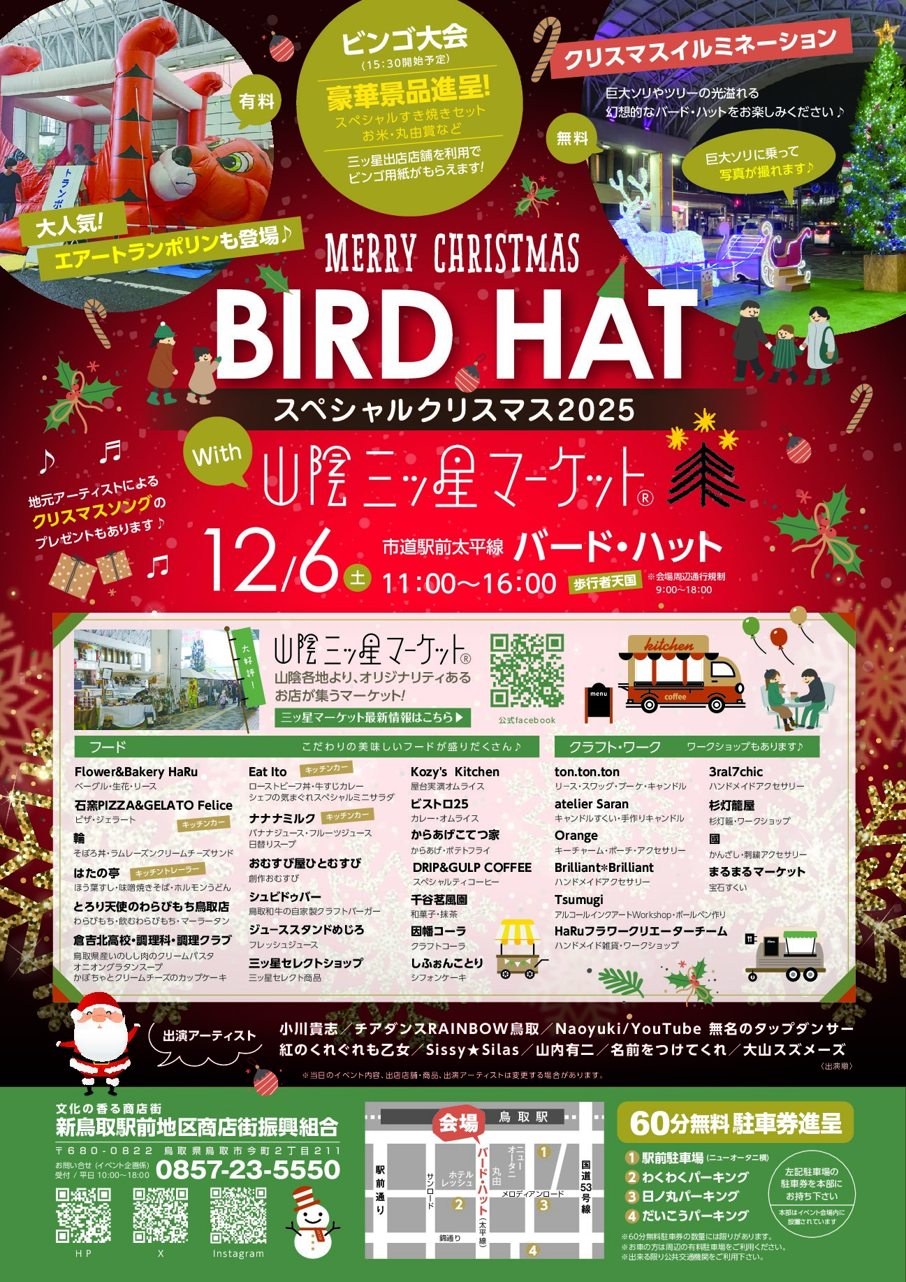 今年も残り1ヶ月! バード・ハットでは、今年最後のイベント『スペシャルクリスマス2025』を歩行者天国にて12月6日(土)11:00~16:00に開催♬