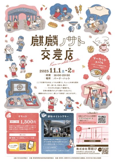 このイベントは、地域の食べ物・飲み物を片手に鳥取の街を楽しむマーケット×バルを中心に、夜にはナイトシアターも開催されるなど食と文化が交差する2日間です!食べ歩きや、いつもよりちょっと夜更かしして楽しむ映画など、家族で楽しめること間違いなし!ぜひ遊びにきてくださいね♬   <詳しくは下記サイトで確認してください…